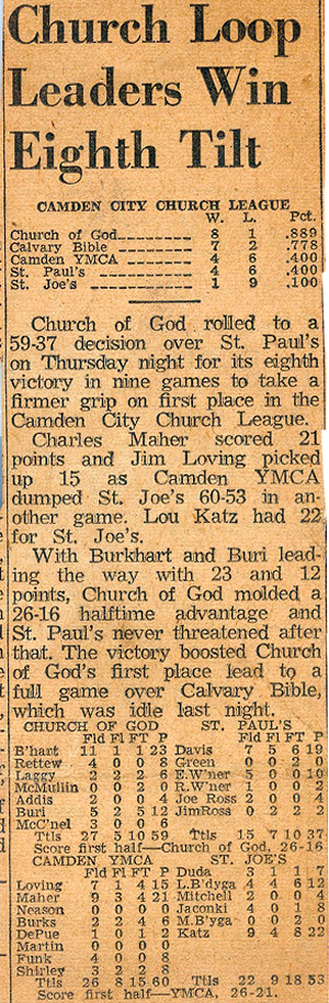 After Katz graduated from Camden High his participation in basketball diminished. In reviewing the press clippings it brought back memories when he showed up for one game during his college freshman year, after missing others, I asked why he wasn't playing and he said he was too busy with school and had no time.