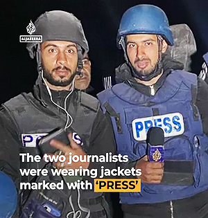 Al Jazeera reporters Ismail al-Ghoul (R) and his cameraman Rami al-Rifi (L), were killed in an Israeli strike in Gaza - (Al Jazeera News screen shot photo)