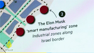 Does Elon Musk have a share in the Tony Blair Affair to take over Gaza? The map indicates he has a tech zone section bordering Israel.