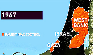These are the 1967 borders for Israel and what was left for the Palestinians. What they also did was disrespect the Palestinians by naming them the West Bank and Gaza -- (Screen shot photo from AlJazeera.com)