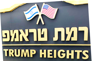 Donald Trump's payoff for supporting the apartheid state of Israel is starting to pay-off. Israel named the Trump Heights town after him. What is to follow, Trump Hotels, office buildings, golf courses and resorts in Israel? Stay tuned...
