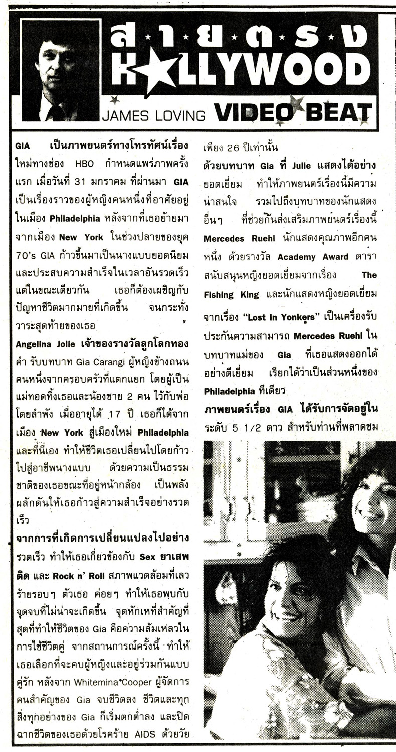 VIDEO BEAT - Angelina Jolie as GIA - Story in THAI Published 1998