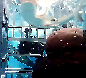 When the sharks recognized their favorite meal, a huge seal aka Shaq, the attack began when the sharks surrounded the cage to devour this fascinating meal.