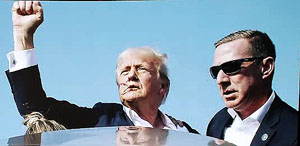The shot grazed Trump's upper part of his ear. As he reached up with his hand to touch the blood dripping from his ear he dropped behind the podium. Secret Service agents rushed up to the stage and covered his body for protection. Shots rang out from secret service agents stationed on roof tops shooting at the sniper.
