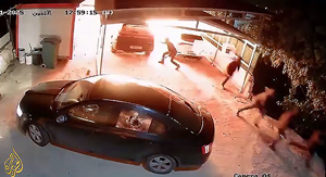 Illegal Israeli settler thugs flee after setting fire to a Palestinian home and car in the West Bank - (screen shot of The Listening Post program)