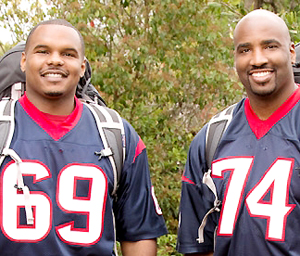 Former Football Teammates Chester Pitts (left) and Ephraim Salaam (right) compete in a sprint around the globe for $1 million dollars on the new season of THE AMAZING RACE - (CBS photo)