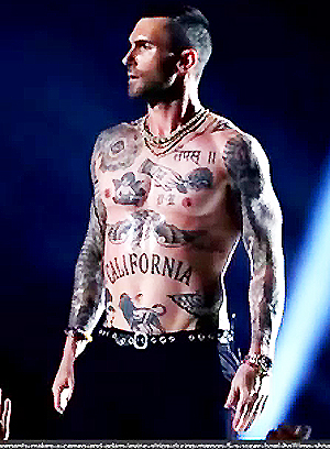 Adam Levine could be considered OUT THERE when he exposed his tattooed chest in this season's Super Bowl half time show - (Screen shot - photo)