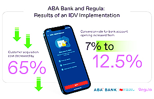 Regula, a global developer of forensic devices and identity verification solutions, helped ABA Bank, the largest Cambodian commercial bank, enhance its customer onboarding process via their mobile app. Upon implementing Regula Document Reader SDK, the bank has achieved a 65% reduction in customer acquisition costs and an increase in account opening conversion rate from 7% to 12.5%.