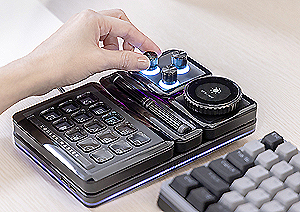 MasterHUB shown with Base holding 4 Modules: 15-Key IPS Display Module, Encoder with IPS Display Module, 3xKnob Module and 2xRoller Module (all part of the newly available Streamer Kit) - (Photo: Business Wire)