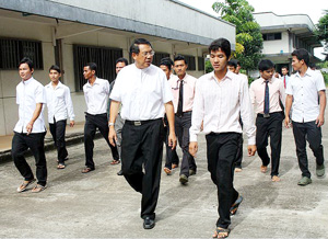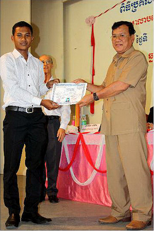 Sihanoukville governor Mr. Bong Sarath presents certificuts to students at the Don Bosco Technical School in Sihanoukville, Cambodia on their graduation day August 13, 2010 - Don Bosco photo