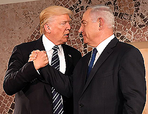 MONEY, MONEY, MONEY & ALL THE RIGHT MOVES - Trump has the cozies with Israel's Benjamin (pulls his nuts &) Yahoo at the Israel Museum. Jerusalem May 23, 2017. Is it about love at first and continuous CORRUPTION DOLLARS?- (U.S. Embassy Tel Aviv photo)