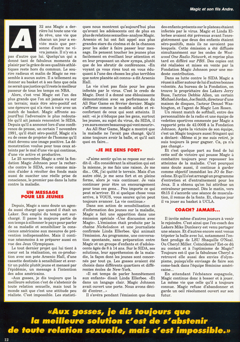 MAGIC JOHNSON 92 USA OLYMPIC DREAM TEAM story IN FRENCH published 1992