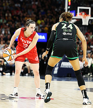 Napheesa Collier guarding Caitlin Clark - ( John Mac photo)