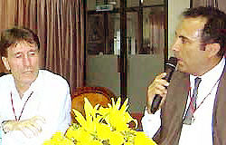 In January 2004 Pannasastra University's Dr. Raymond Leos (right), and BBC World Trust's Matthew Robinson (left) participated in CAMBODIA'S FILM FESTIVAL - (James Loving NR photo)