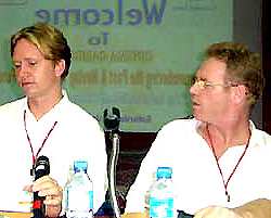 In January 2004 Nick Ray (left) author of the Lonely Planet Travel Guide to Cambodia and then AFP's Phnom Penh Bureau Chief Luke Hunt (right) participated in CAMBODIA'S FILM FESTIVAL - (James Loving NR photo)