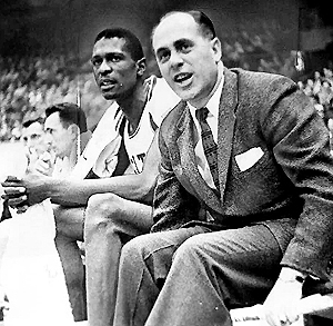 Bill Russell voted the best NBA player of all time teamed up with Celtics coach Red Auerbach to win the 1956-57 NBA title. For Russell it was his rookie year, for Auerbach it was his 1st title after 11 years as a coach in the league - (The Sporting News Archives - Jack O'Connell photo)