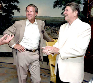 Frank Gifford is seen here on the left of this cropped photo taken at the White House in 1983 with then United States president Ronald Reagan - (White House Photo, Courtesy Reagan Library, PD - Public Domain)