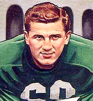 Chuck Bednarik proved extremely durable, missing just three games in his 14 seasons for the Philadelphia Eagles from 1949 through 1962 and was the last of the NFL's "Sixty-Minute Men," players who played both offense and defense on a regular basis - Bowman Large Football Card - (public domain)