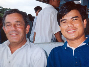Then Cambodian national football team manager Joachim Fickert and the Cambodian Football Federation's Tola May in 2002 at the Old Stadium in Phnom Penh - www.nationalradio.com - photo