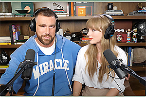 Being played works both ways since Taylor announced her most recent LP on Travis' and Jason Kelce's podcast - (Screenshot photo)