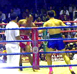 The two fighters previously met three times with the then champion Dell winning the first two encounters. Phouthang took the title from Dell in 2001. The fourth meeting was held Thursday May 6th on Phouthang's home turf, the 8,000 seat indoor arena at Olympic Stadium in Phnom Penh, Cambodia.