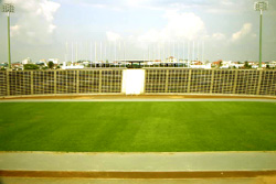 IT WASN'T BRAZIL OR… It wasn't Brazil… it wasn't Man U… it wasn't Real Madrid but it was a spectacle to be seen. What those in attendance saw last night at Cambodia's Olympic stadium was the largest crowd I've seen attend a football game in Cambodia since I started covering the national team at the 2000 Tiger Cup. On a cool (for Phnom Penh) after a rainy day our estimate of around 12,000 fans came to a football game under the lights. This in itself was the major spectacle and a first for me seeing a football game played under the lights in Cambodia. Olympic Stadium was closed for several years for renovation thus relegating football to be played at the Old Stadium that sat 8-10,000 depending on the width of the bottoms sitting on bench seats. When China played Cambodia for the World Cup Qualifiers in 2001 they drew a crowd to fill Old Stadium. This German team was not China thus making the large attendance more remarkable. Though Singapore was a day game the lights weren't working at the time the Tiger Cup champions came to town this past month This time the lights were working and helped provide the artificially lit sunshine that brought joy to those in attendance. The Saturday night game was on…. It was billed as Kehmara, Prince Norodom Ranariddh Sihanouk's team who are the champions of the Cambodian Premiere League verses Germany. What the people were enjoying was a game against Blau Weis Eirfurt, Germany a club team in a city league. Know one in the stands really cared or missed the three powerhouses of football Brazil, Man U of Real Madrid. They were satisfied with what they had with BWE providing enough entertainment.