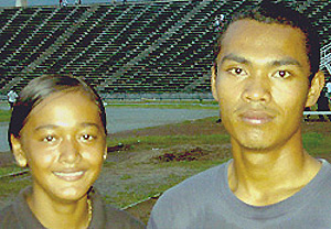 Cambodian Olympic track athletes 16-year-old Sou Tit Linda and Phouk Sopheak - photo James Loving NR