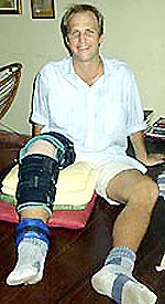 Chris Dechard former AP chief correspondent in Cambodia braces for rehab of torn ACL - NR photo